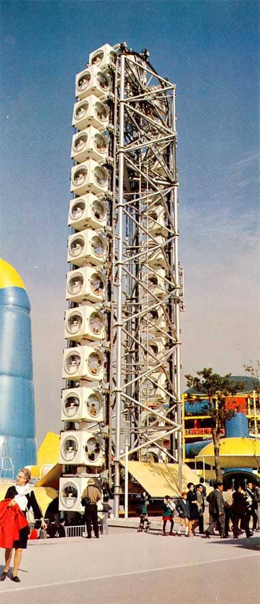 「人類の進歩と調和」をテーマにした1970年の大阪万博において、当社はエレベーター、エスカレーター、オートロード(動く歩道)、舞台機構、ローラーコースター、急流すべりなど、多種多様な製品を納入しました。