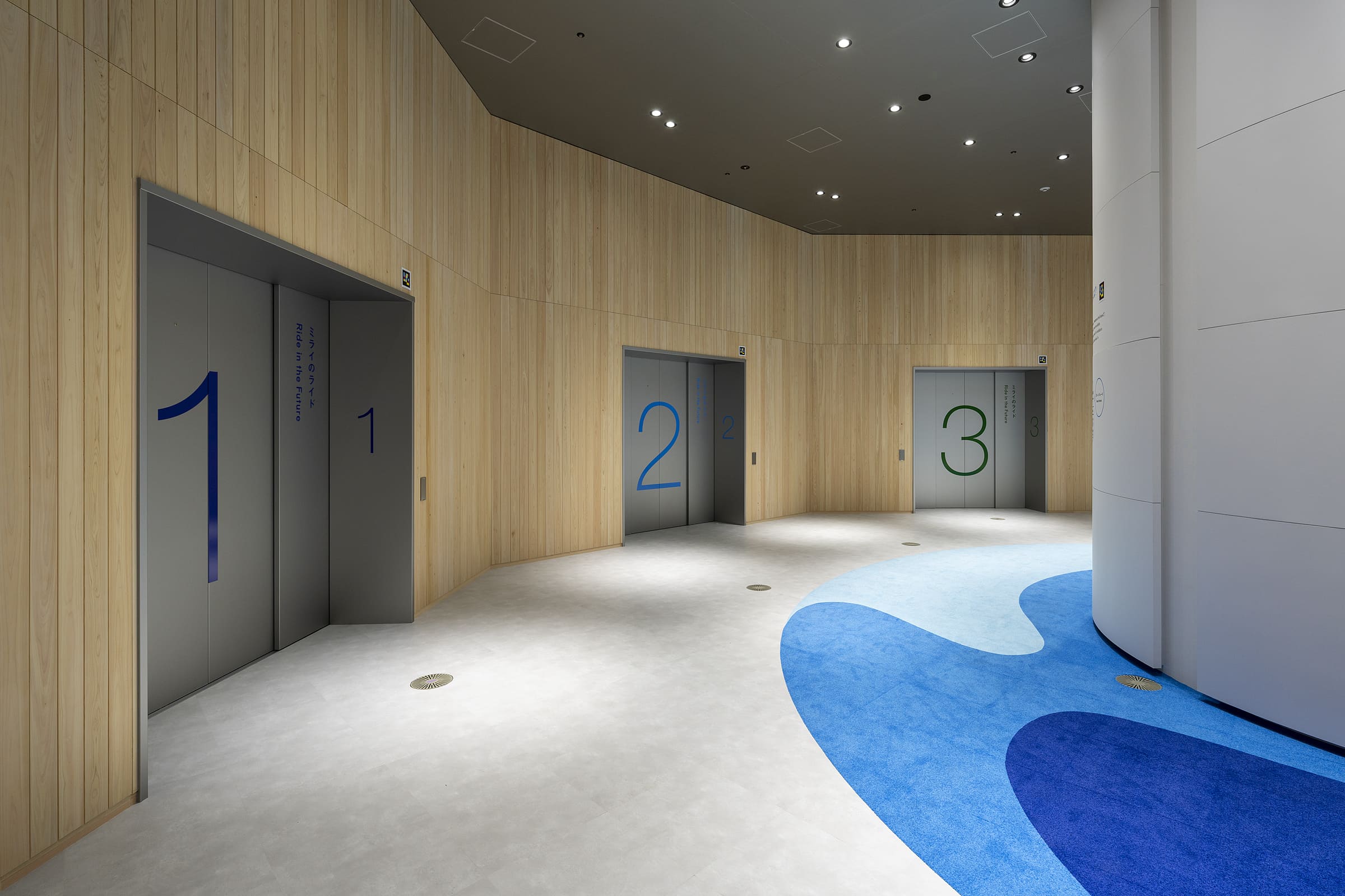 サウジアラビアパビリオンには、エレベーターを4台納入しました。サウジアラビアの文化と美を想起させる特注意匠により、パビリオンのテーマと調和する魅力的な移動体験を提供しました。
