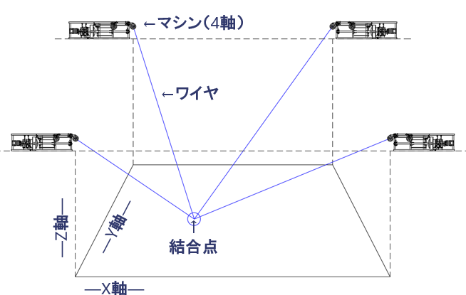 制御コントローラや操作システムも自社開発しており、XYZ軸の3次元ジョイスティックでのマニュアル運転の他、マニュアル運転の軌跡を記録して再生するレコード運転、各ポイントをスムーズにつないで動かすキュー運転などが可能です。